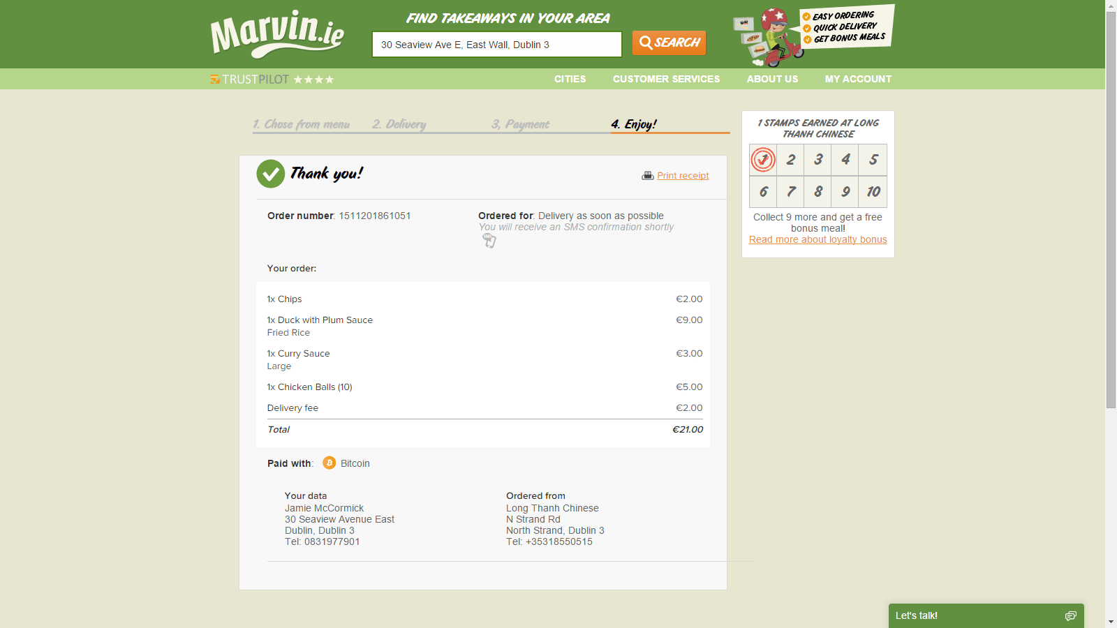 Buy Takeaway Food with Bitcoin from Marvin